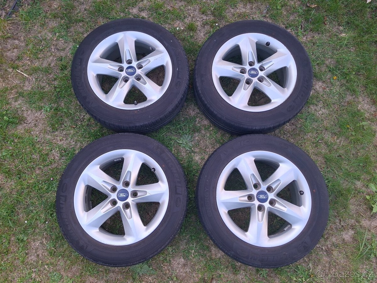 Disky: originální, lité 16" disky Ford 8M5J - EA, ET: 50. Nezdeformované (nenakopané), místy oděrky a podřeniny viz foto, včetně všech středových krytek Ford.
