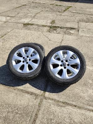 Alu kola dezent 5x112r17 - [26.4. 2026]Na prodej alu 5x112 r17 225/55 7J, et35 s letními pneu! Pneu spis na jednu sezonu cena 4000 tis při rychlém jednání je možné domluva o ceně