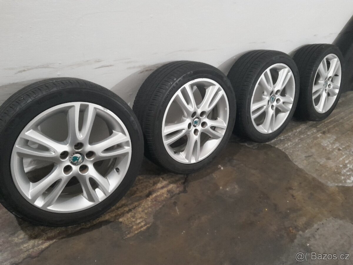 Prodám originál ALU-kola Škoda Fabia 1-2,letní pneu.zn.Barum 205/45-16,ET-43,rozteč 5x100mm,6,5Jx16,vzorek cca 6-7mm,stáří 5 let,cena za komplet