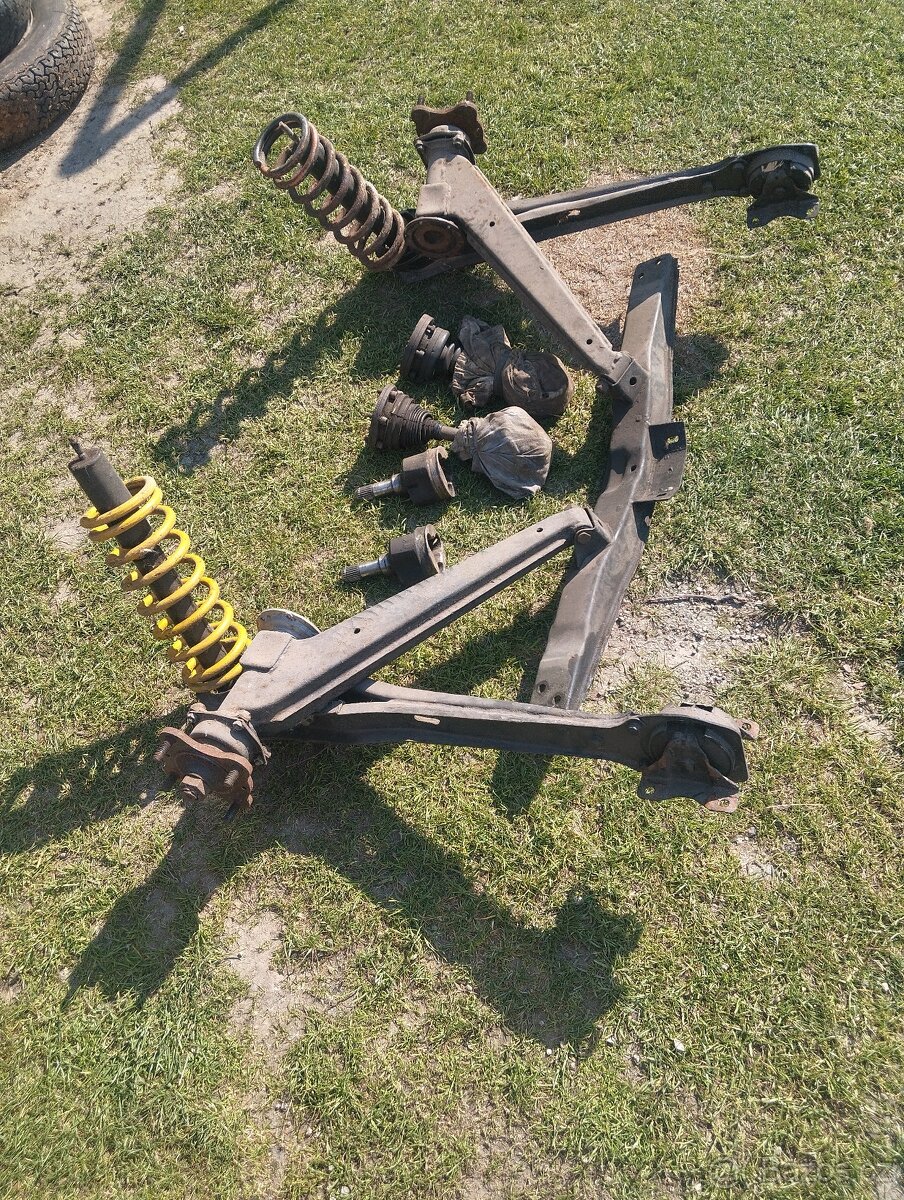 Některé díly nové např: 4x tlumiče, 4x ložiska nábojů, čepy, kotouče, destičky, bubny, pakny, prasátka, výfuk, zrcátka, světla a atd..