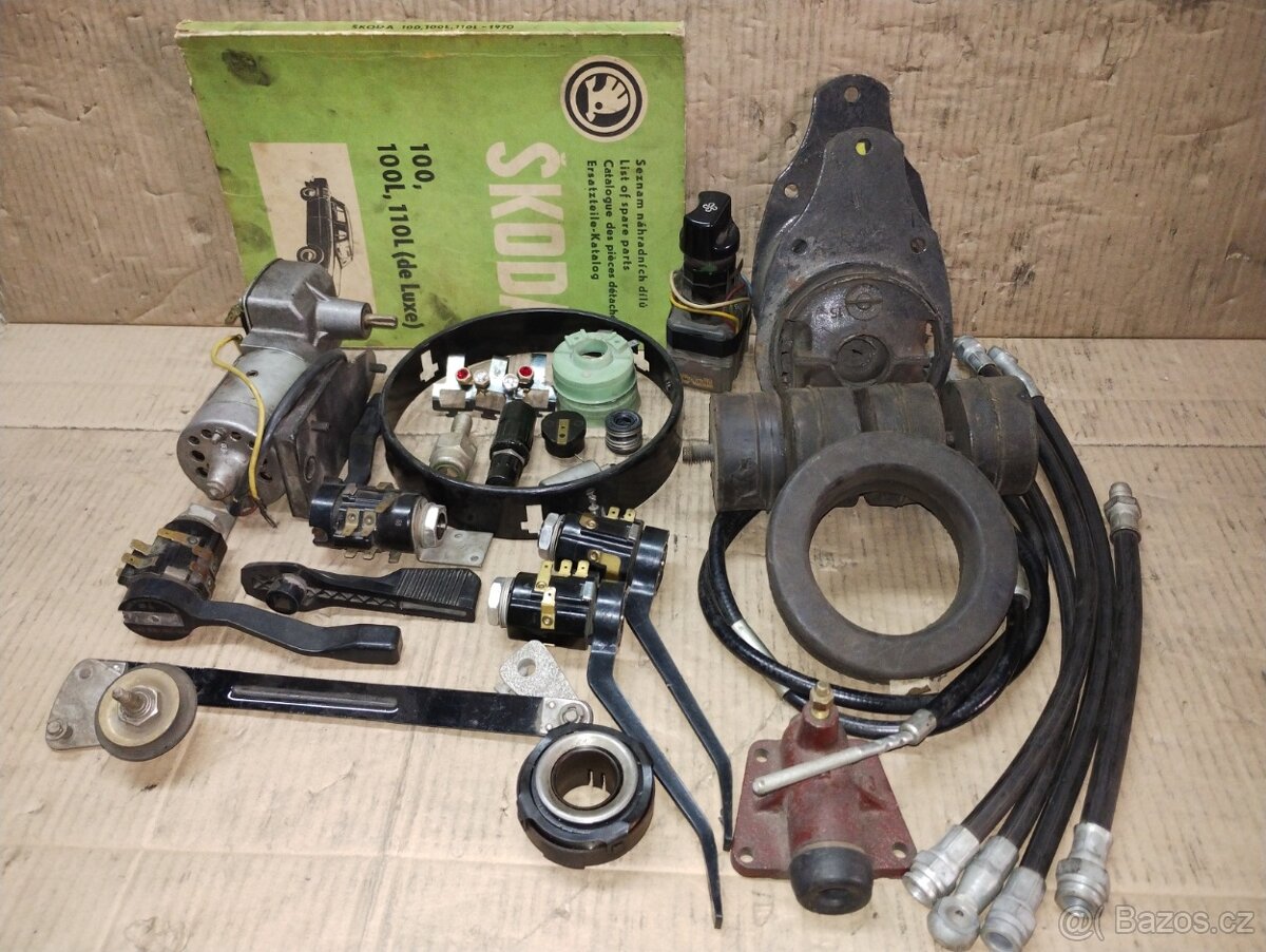 brzd. spínač dl.180,držák světla 300kč,perka držáku ks 50kč,palec 100kč,odrazky spz 250kč,kondenzátor 50kč,zásuvka 50kč,zástrčka 50kč,motorek stěrače 450kč,držák žárovky 50kč,katalog 800kč,klika dveří 50kč,těsnění vodní pumpy 60kč,přepínač směru 500kč,přepínač