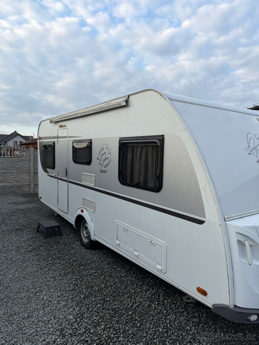 Prodám krásný rodinný karavan prestižní značky Knaus sport r.v 2015 stačí sk.B celkova nejvyšší váha 1300 kg karavan je ve výjimečně zachovalém stavu jsme 2 majitelé nekuřaci interiér bez jakéhokoliv poškození rozkládací sezení do tvaru U a dvě samostatné lůžka které se dají spojit na velkou postel WC se sprchou umyvadlem 3 plotynkovy vařič dřez karavan je nezávislý solární panel nová baterie markýza nosič na 2 kola pro více fotek a informací mě kontaktujte na tel 737330820 dohoda na místě možná.