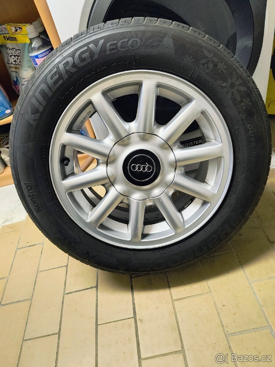 Prodám sadu alu disků z Audi 80 Cabrio s letními pneu Hankook.